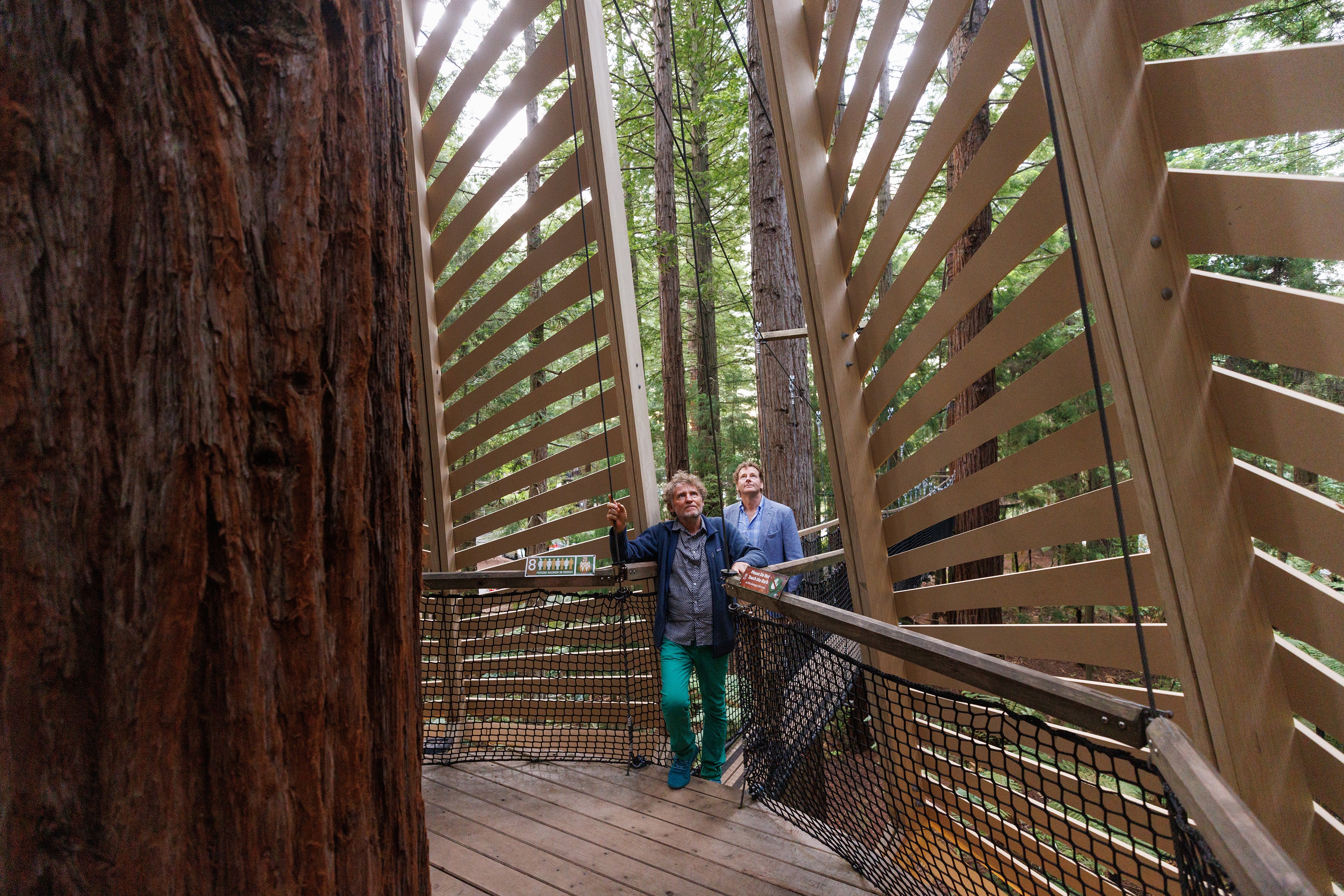 The timber structure encourages interaction and appreciation of the natural surroundings, it harmonizes with the sequoia forest, respecting its grandeur and ecological importance.