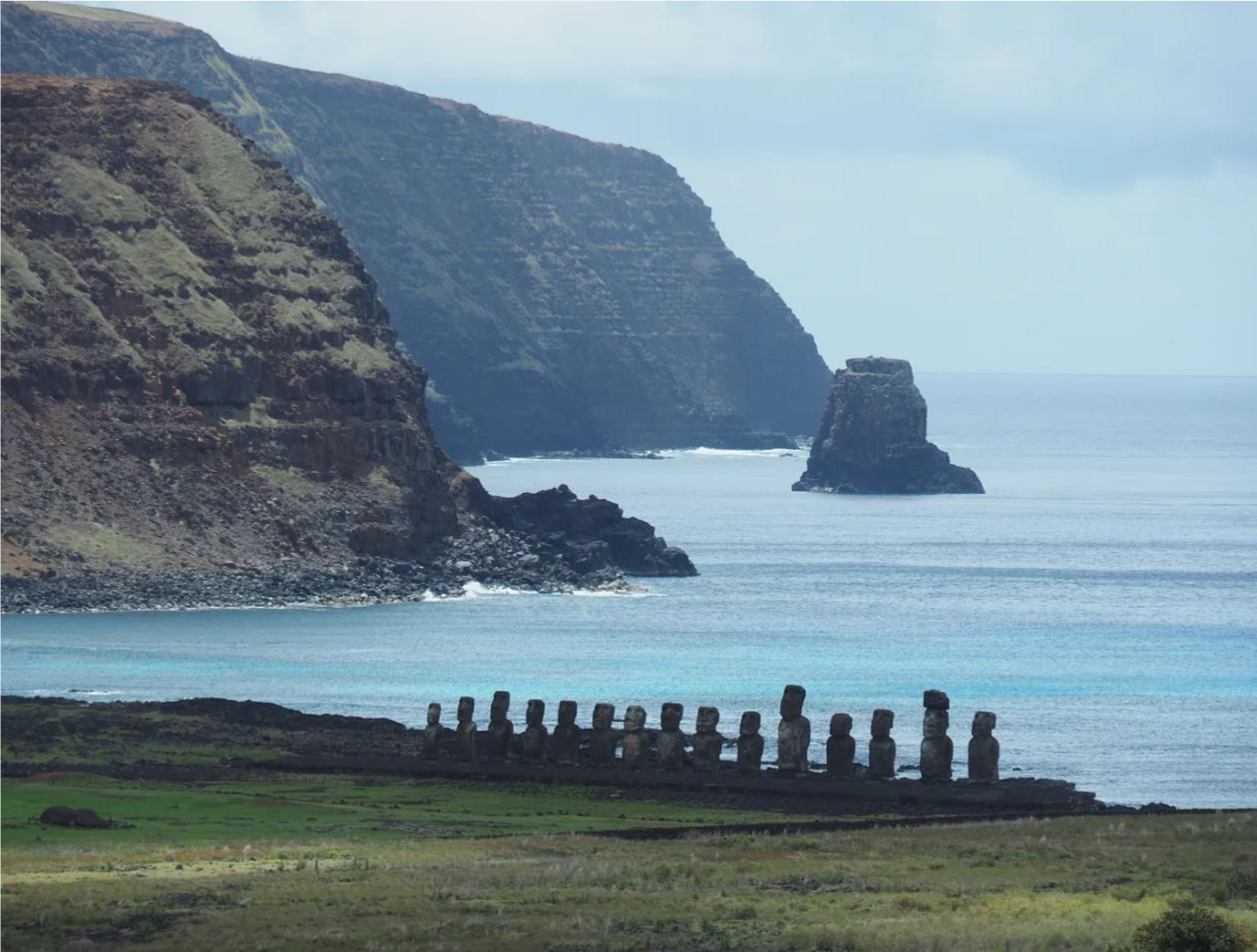 Somehow the urge to chase the horizon soon left them and they settled into life in the most isolated human community on Earth. They put their new stone skills to work, building ceremonial community spaces for their villages. They had brought with them from Tahiti a very stratified society with royalty, nobles and workers, so in time they honoured people of māna with statues. These were important ancestors who remained to look after the community, standing tall and proud, with their backs to the sea which they had now forsaken.