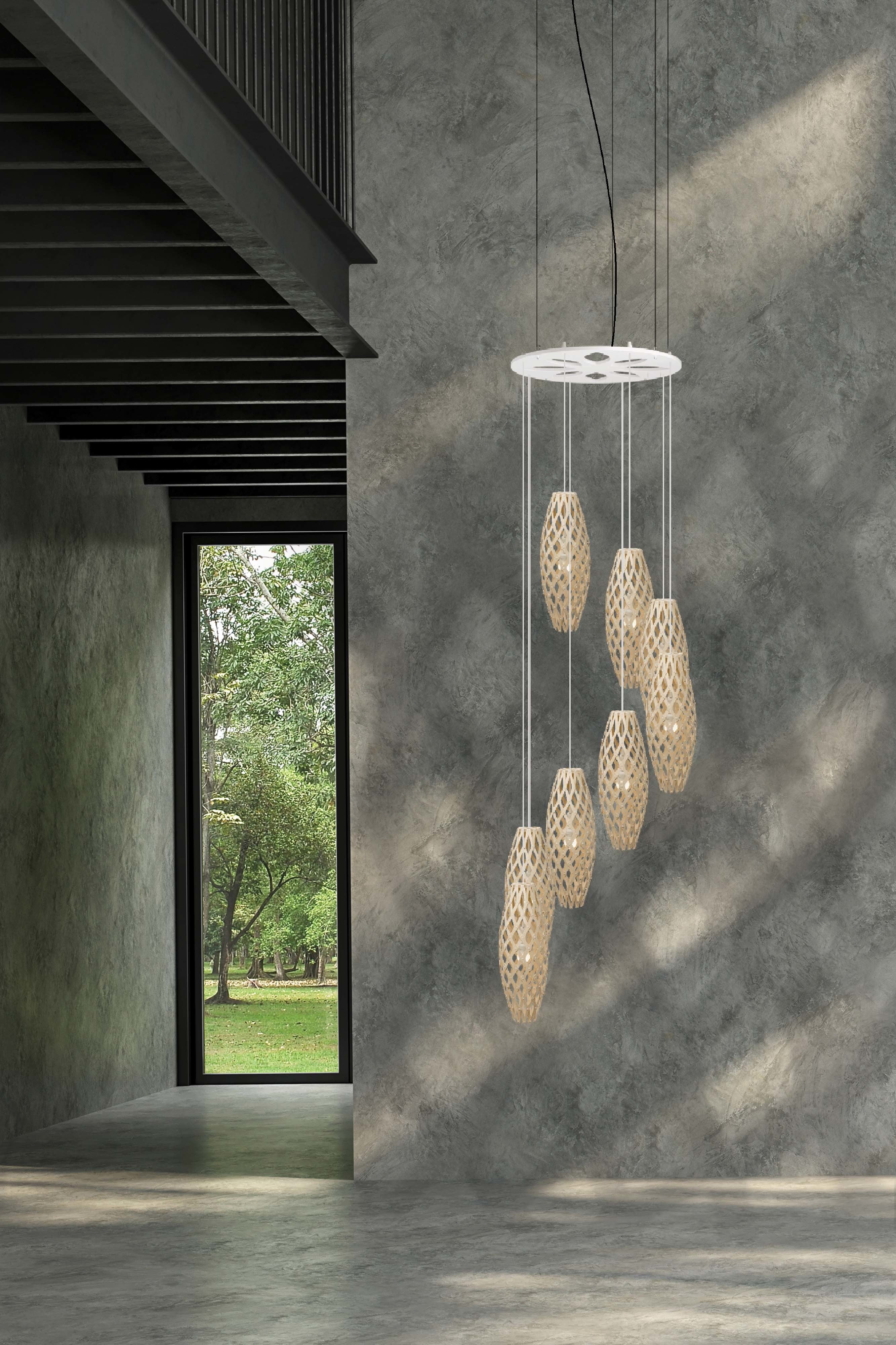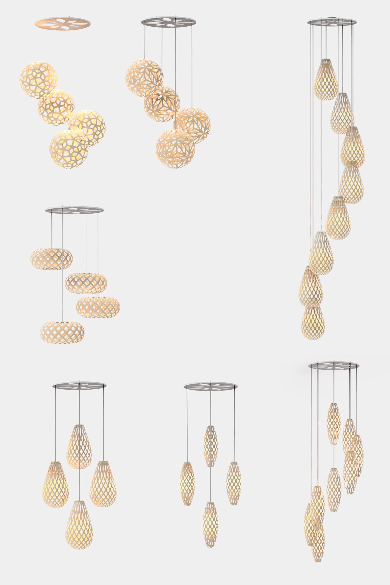 The Cascade system is designed to provide an easy hanging system for our current range of lights. The smaller sizes of Coral, Floral, Kina, Kōura and Hīnaki have been carefully grouped to maximize the effect of a cluster of lights.