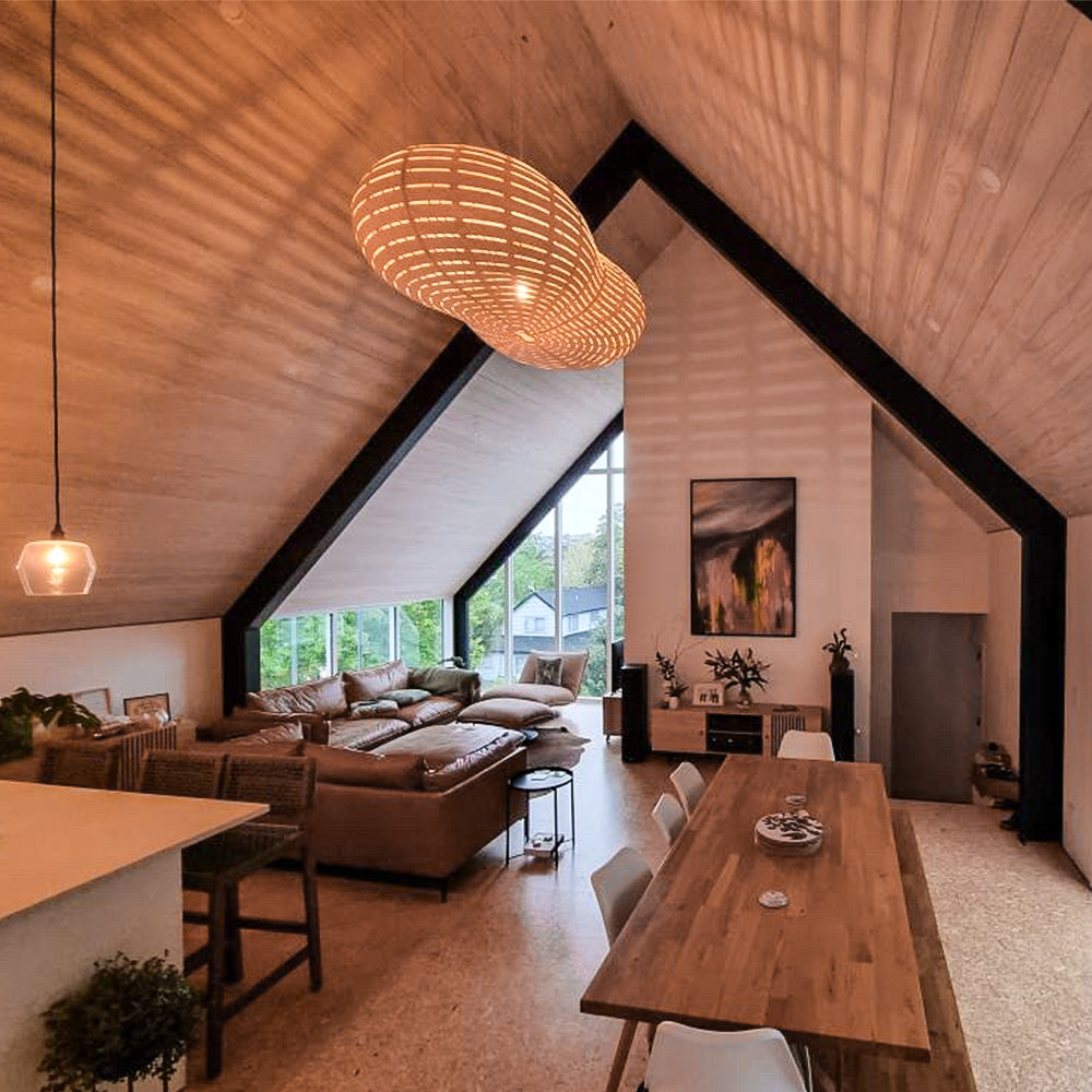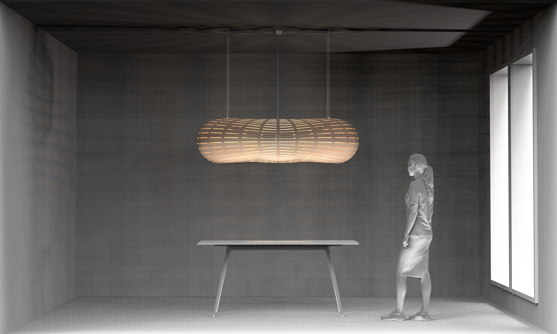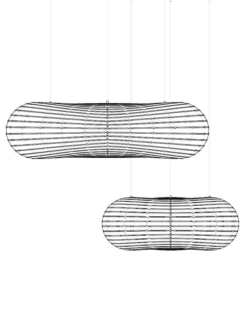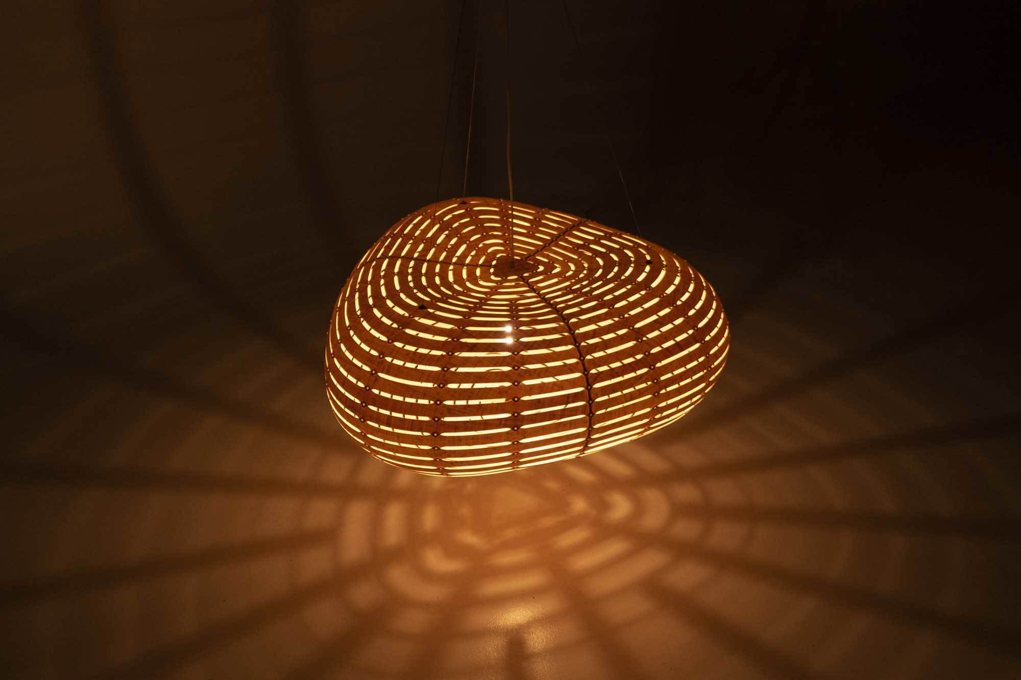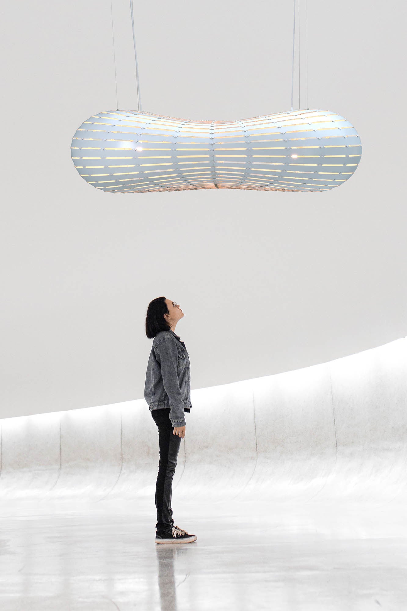 Cloud lights were first launched in 2008 as part of the Spiral Islands installation of matching lights and settees. This was inspired by the clouds that David saw sitting over small islands all over the Pacific Ocean, which were used by Polynesian navigators to find islands from afar. The Cloud lights were made with frosted plastic but were later discontinued due to the negative environmental impact of the material. Cloud has now been given a second chance through a new material. The new version is made almost entirely of bamboo plywood applied in the same strips or rings. This allows light to shine through while offering a similar visual lightness as the former translucent plastic version.