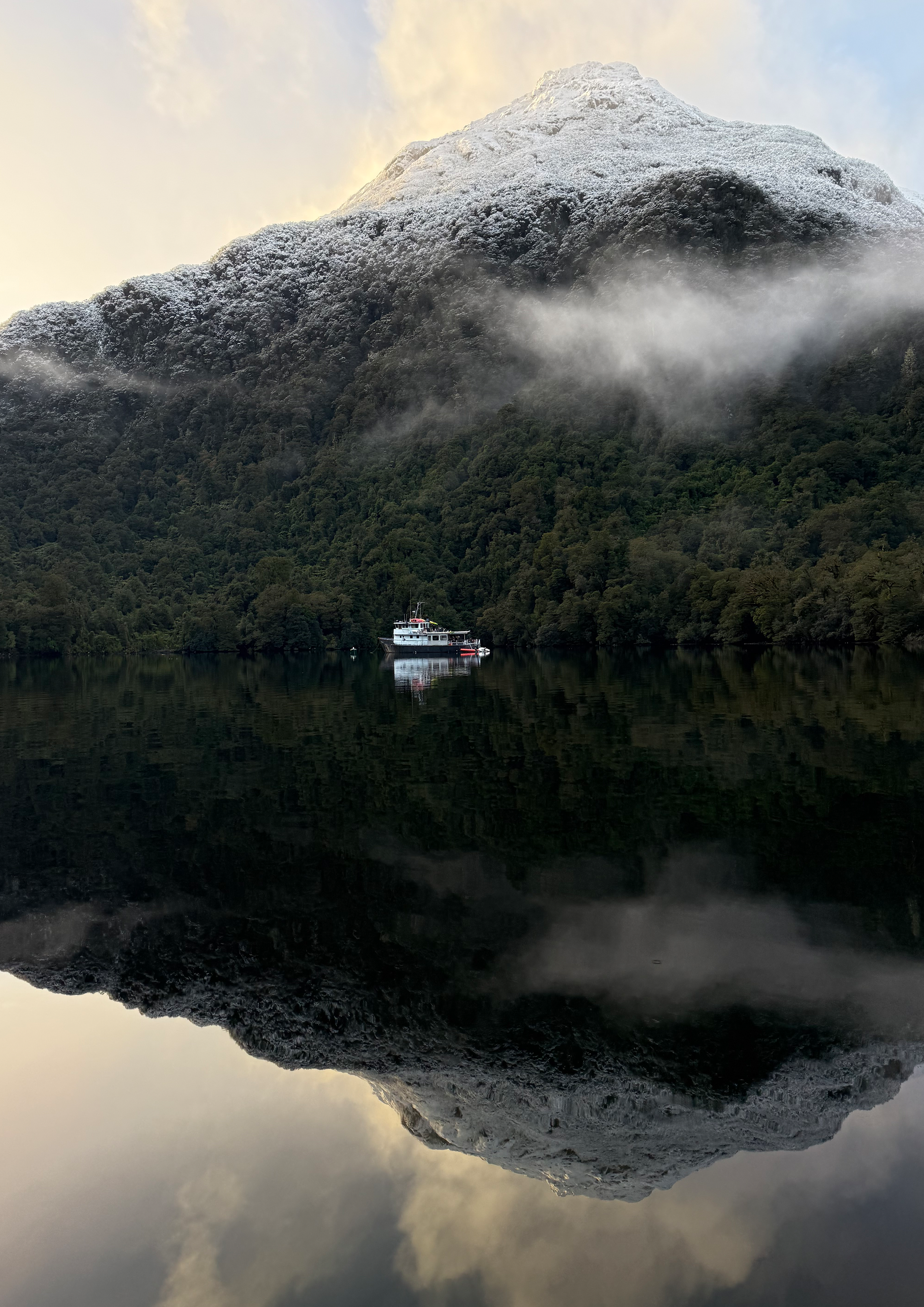 Dusk is a tribute to the immersive landscape of Dusky Sound in Fiordland, South Island, Aotearoa.