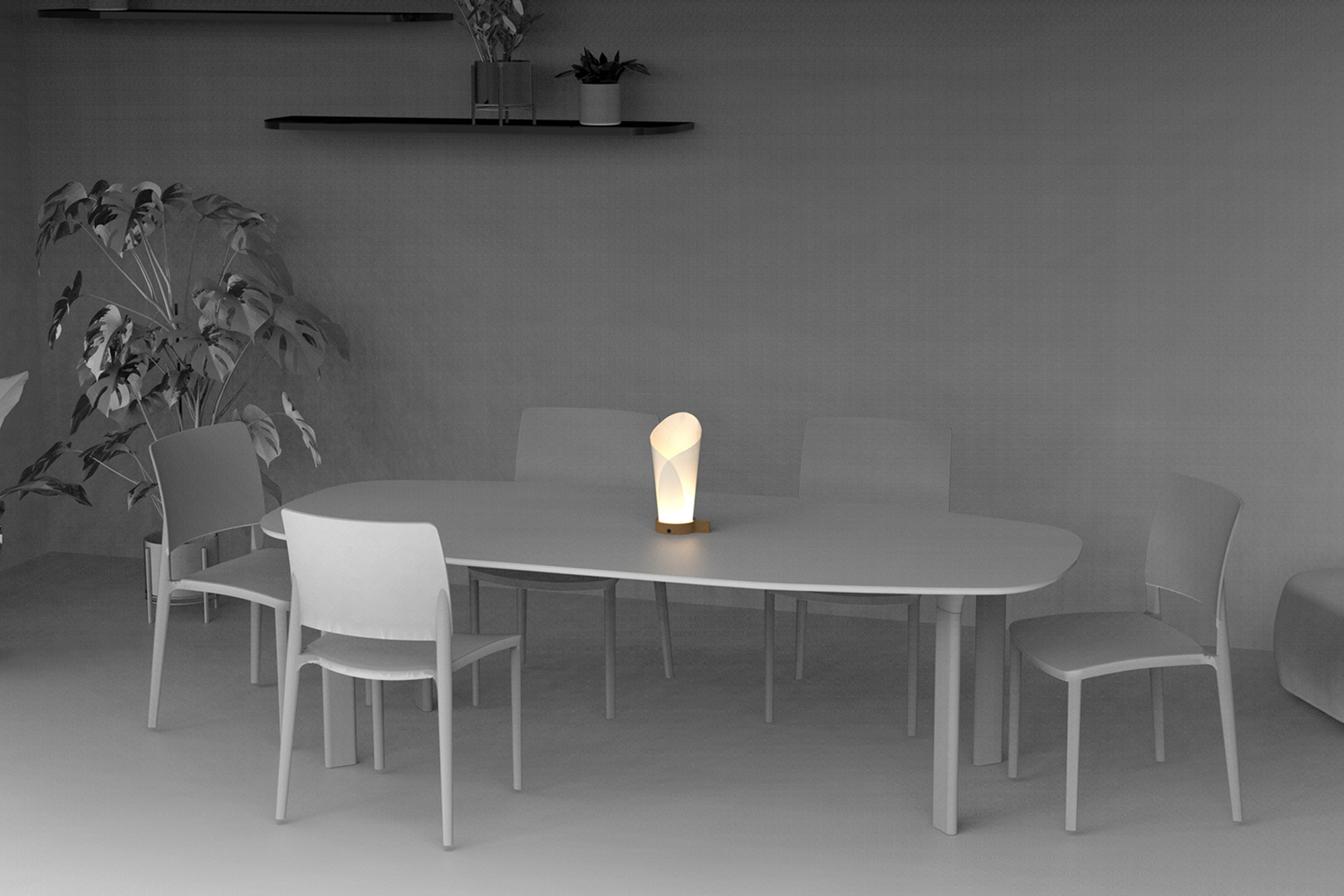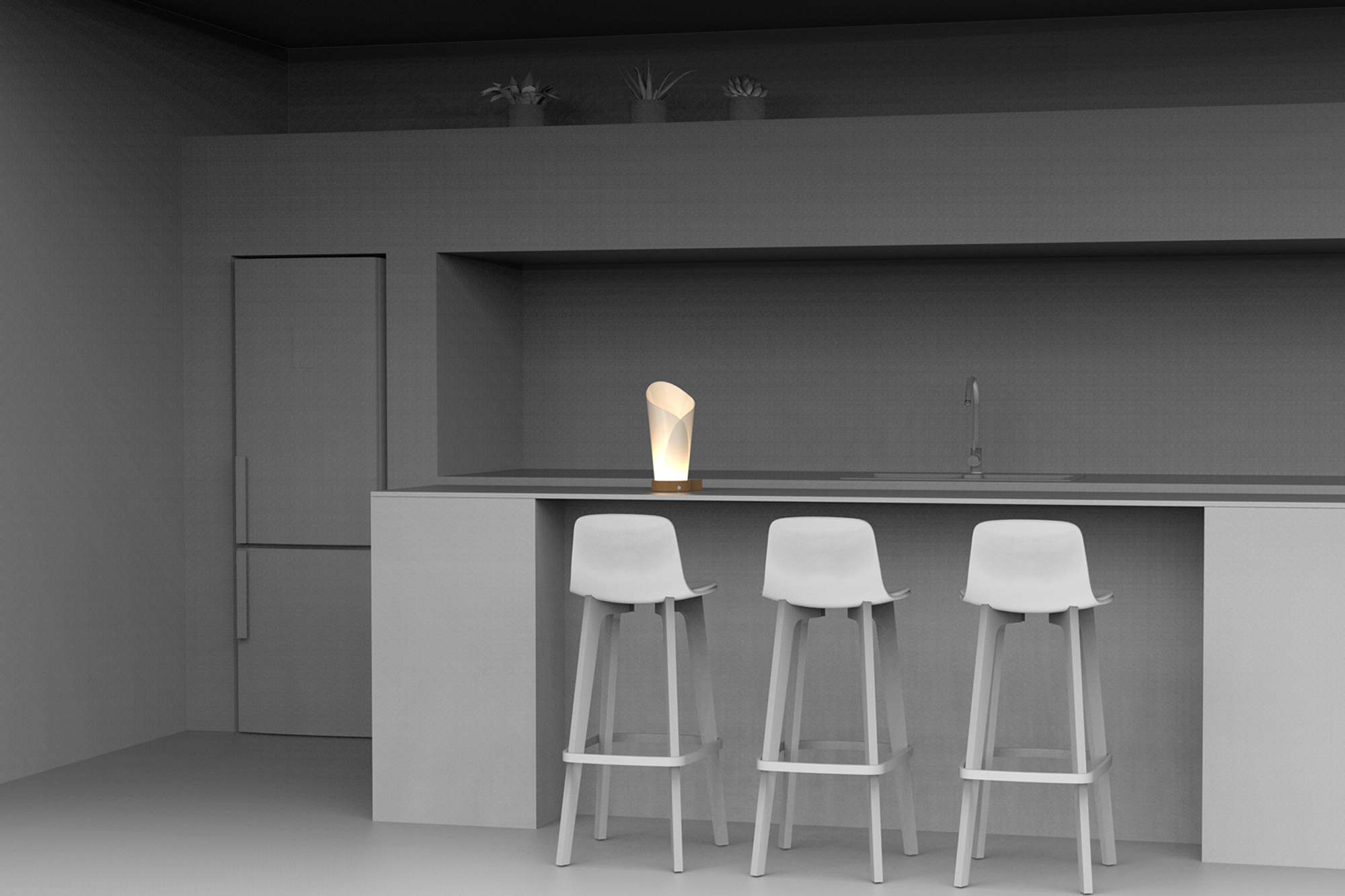 Dusk is our first portable, LED battery-powered light, designed to move with you. It adapts to any interior space, from intimate corners to open living areas and offers warm, ambient light whether resting on a bedside table or carried outdoors.