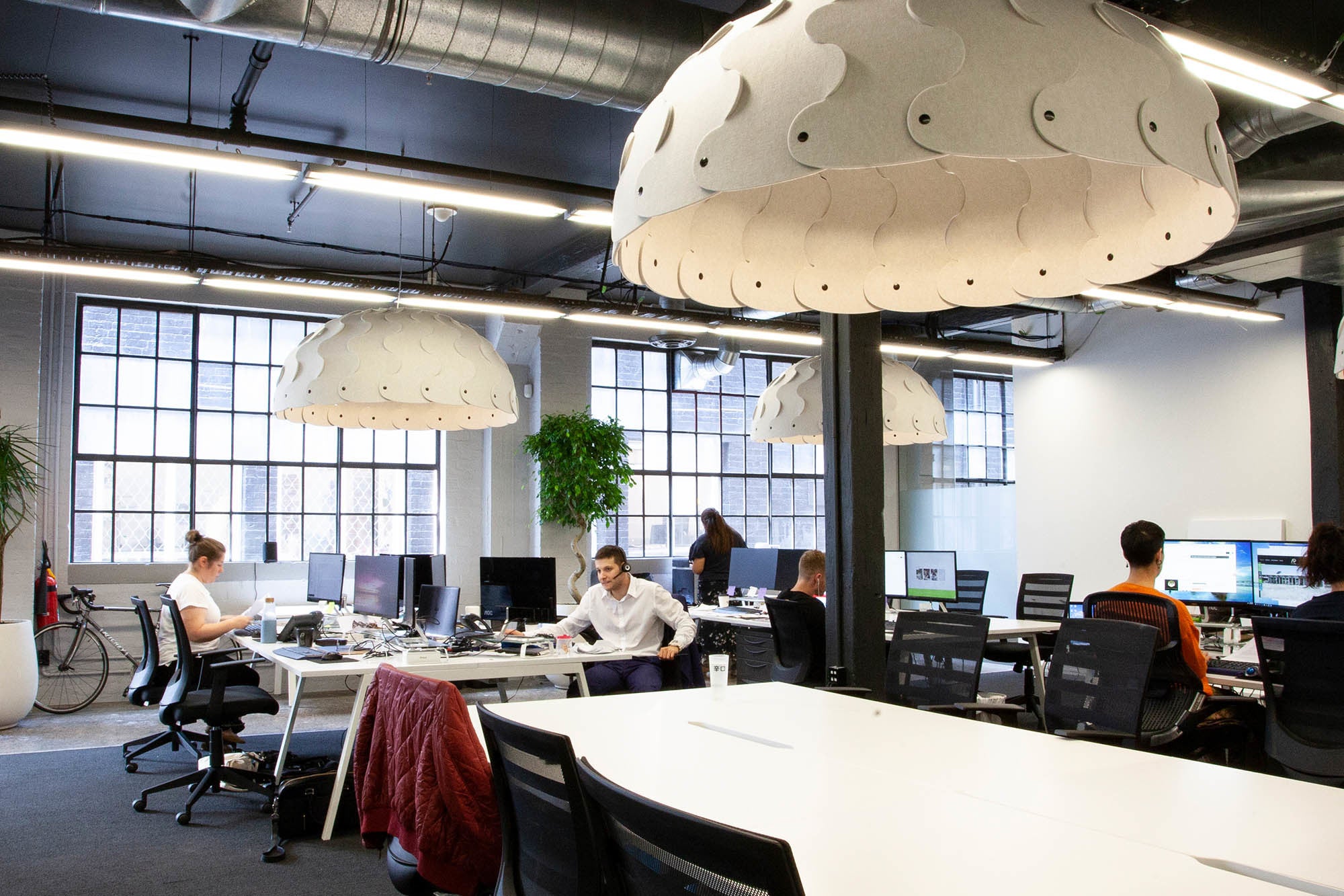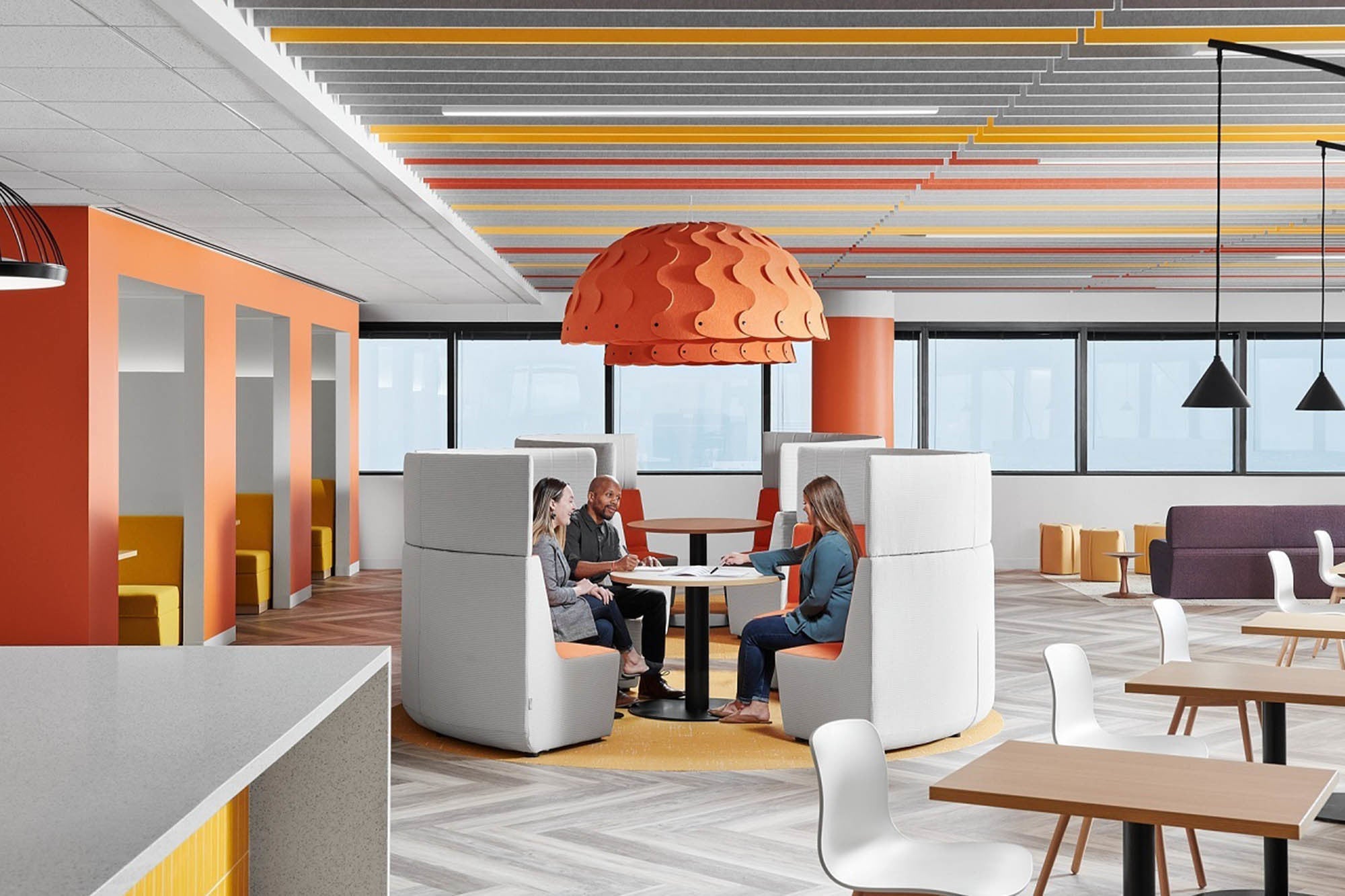 Hush (designed with PLN Group is an award-winning family of acoustic lights which absorb noise and reverberation to create a more peaceful environment. Place Hush over an individual task desk, a group of desks, meeting table or focus space to aid in softening sound and reducing reverberations. This allows teams to collaborate while also aiding individuals to focus – free of distractions. The lightweight, semi-rigid acoustic panels help mitigate the impact of noise in an open-plan environment.