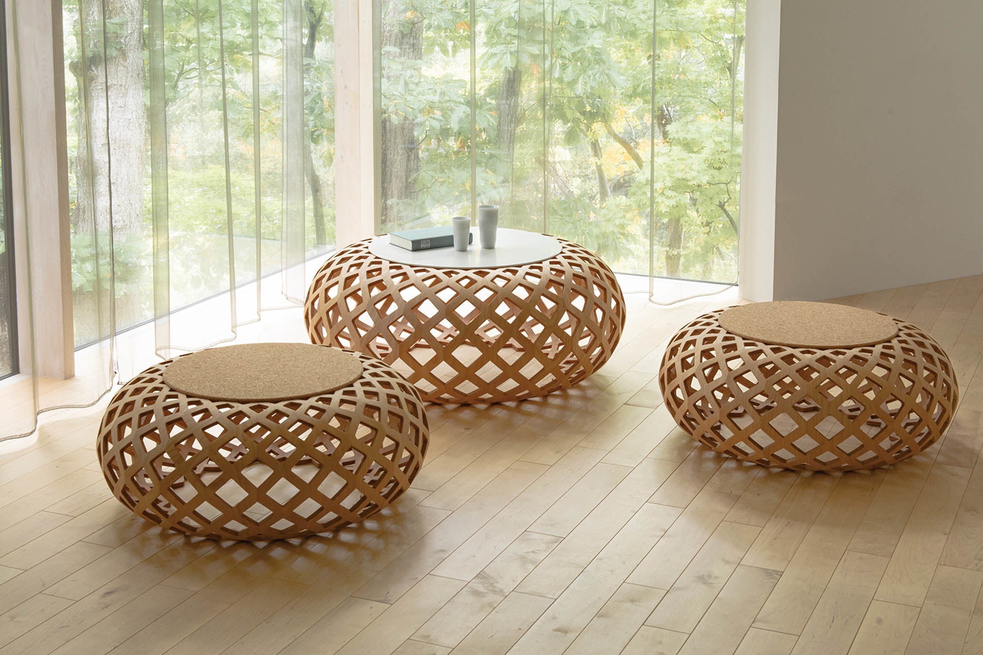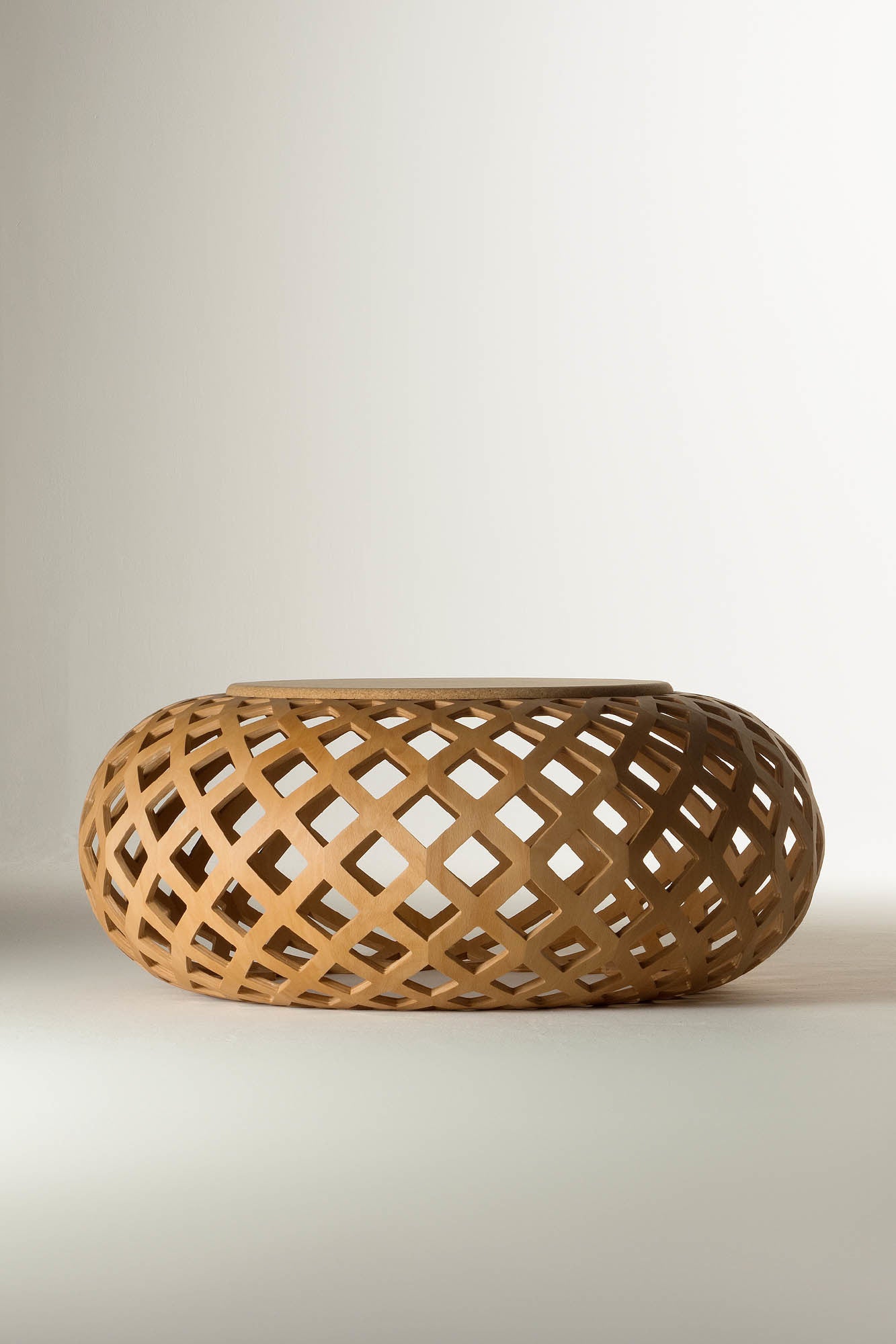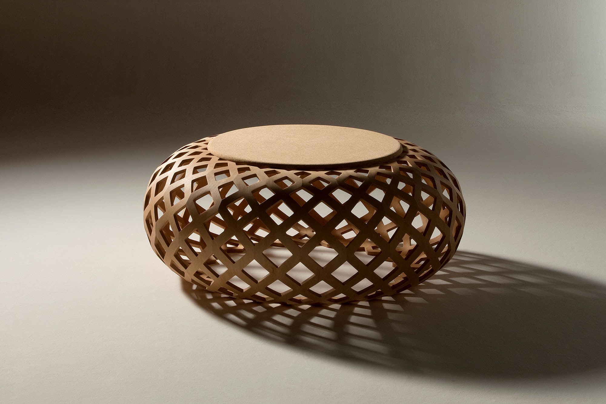 KINA LUX, designed by David Trubridge of New Zeland. This objet d'art is light yet stable and sturdy enough to be used as a table, or even as an ottoman. CondeHouse presents to the world, this masterpiece born through a collection of meticulous handcrafting efforts combined with advanced molding and precision manufacturing techniques.