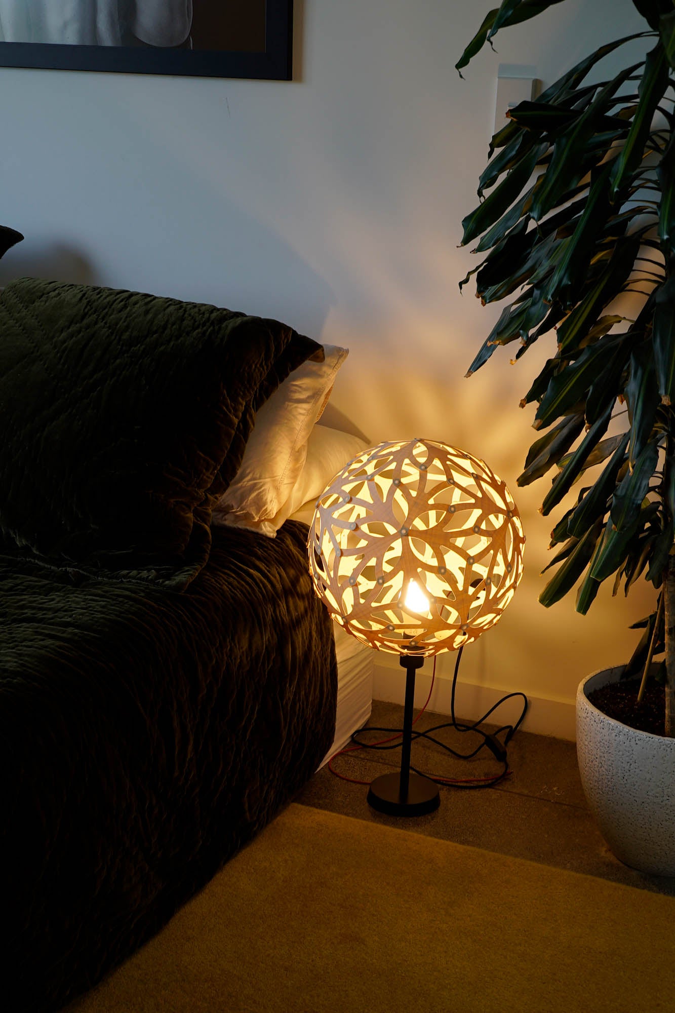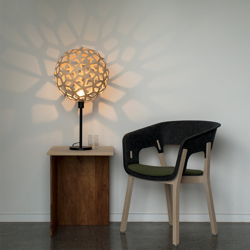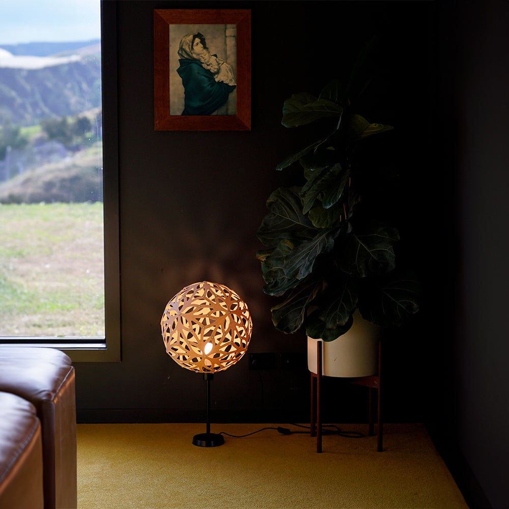 A powder-coated aluminium component allows the fitting of our Coral 400mm/16", Kōura 500mm/20" or Floral 400mm/16" to a lamp base. The fitting is available in black or white and comes with nylon fittings. These smaller lights make great table or bedside lamps casting shadows against nearby walls. Table Lamps are a great introduction to the David Trubridge collection especially for people who may not be able to install a hanging pendant.