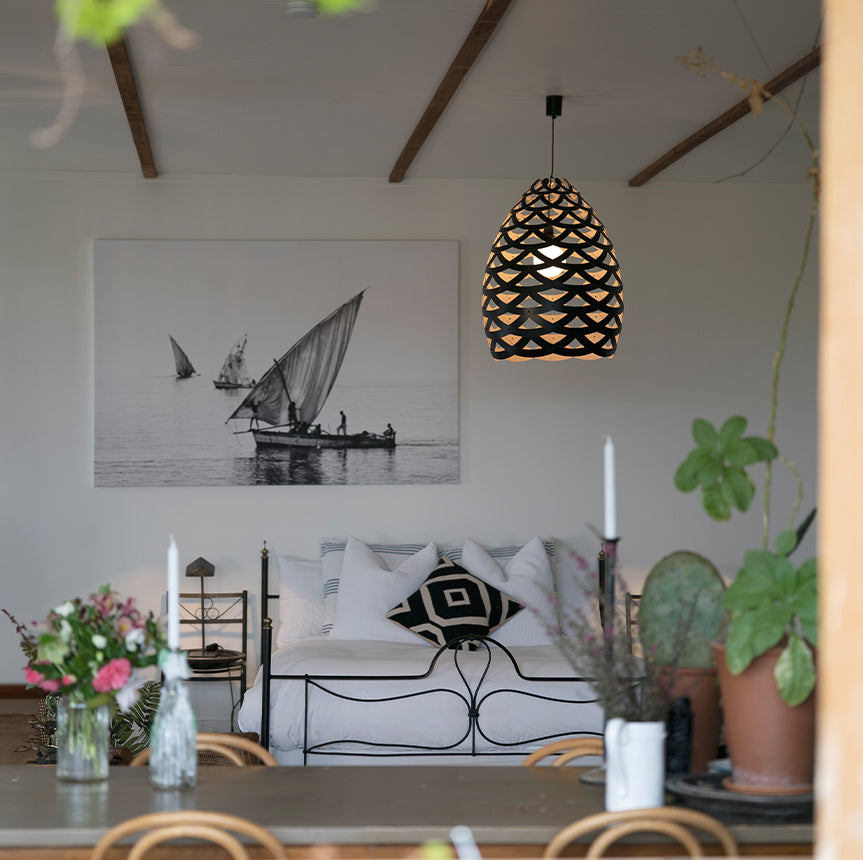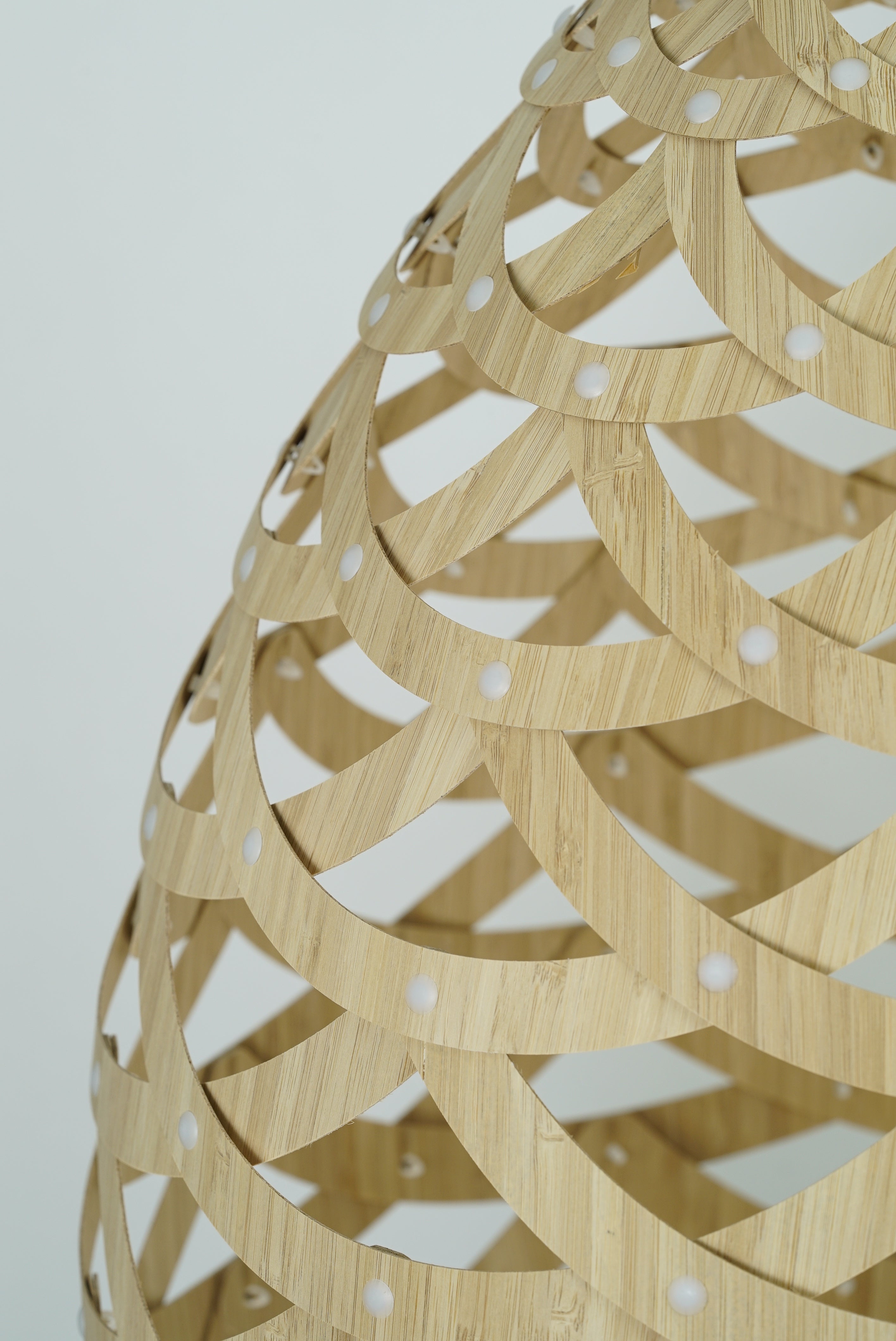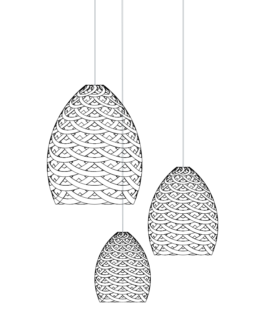 Tūī are the real characters of Aotearoa’s native bush. They hurtle through the bush with drumming wing-beats, miraculously avoiding branches whilst maintaining their cool charm. Their song is like no other: a series of clicks, gurgles and resonant, bell-like notes...some off our hearing scale! They have two dangling white wattles on their throats and around their shoulders is a necklace of interwoven rings which is the inspiration of our Tūī light. Half rings of bamboo are woven into a basket form that would sit perfectly over a dining table, kitchen counter or equally hanging in a stairwell or entrance void.